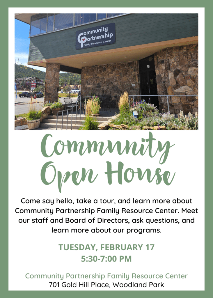 Come say hello, take a tour, and learn more about Community Partnership Family Resource Center. Meet our staff and Board of Directors, ask questions, and learn more about our programs.