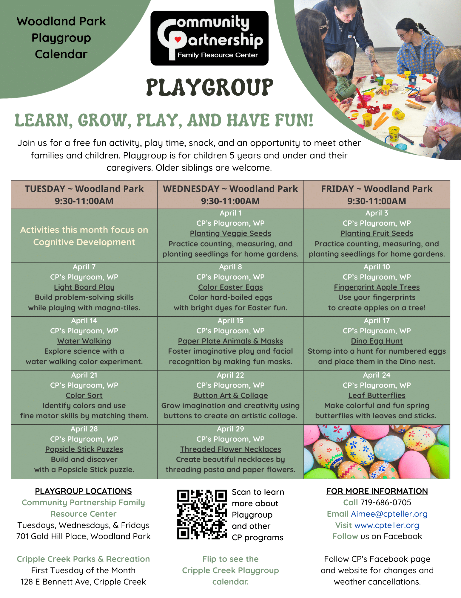 Playgroup is a fun, welcoming space for children ages 5 and under and their caregivers to learn, grow, and connect through play. Each group time includes developmentally appropriate activities that support key areas such as language, motor skills, social-emotional growth, and early learning. Whether you’re new to the area, a first-time parent, or caring for multiple kids, Playgroup offers something for everyone. Older siblings are welcome too!